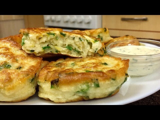 ИНГРЕДИЕНТЫ: Кефир 200 гр. Мука 200 гр. Яйцо 1 шт. Зелёный лук 60 гр. Сода 4 гр. Соль 3 гр. Растительное масло для жарки. Укроп по вкусу. Сметана по вкусу. Вот видео этого рецепта на моём Youtube канале "Домашние советы". Загляните!!! Там ещё много разных вкусняшек. А теперь, ПОШАГОВЫЙ РЕЦЕПТ: В кефир (кислое молоко, ряженку) добавить соду, перемешать. Взбить яйцо и соль. Добавить кефир. Перемешать до однородной массы. Добавляем порциями муку и замешиваем тесто. В тесто добавить мелко нарезанные стебли зелёного лука. Перемешать. В разогретое масло опустить ложку. Промасленной ложкой берём порции теста и отправляем их на сковороду. Огонь сделать средним или же чуть меньше среднего. Оладья жарим с двух сторон до золотистого цвета. ЗАПРАВОЧКА: А теперь порежем укроп и заправим его сметаной Приятного аппетита !!! Если вам понравился рецепт, то ставьте лайк и подписывайтесь на канал