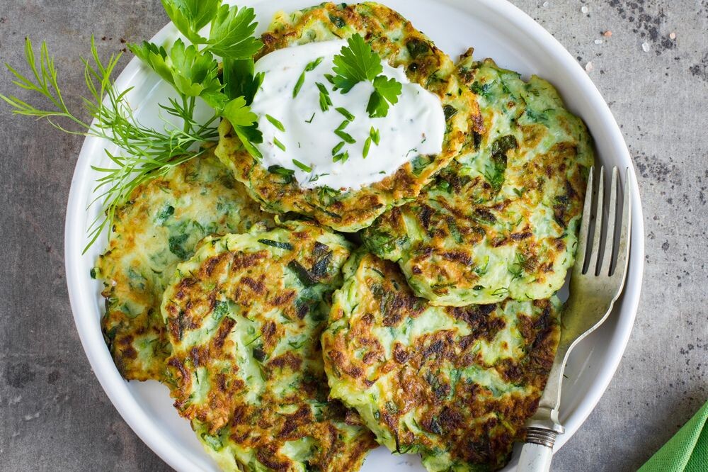 Прежде чем приступать к рецептам кабачковых оладий мы хотим поделиться с вами простым приемом, который решает основную проблему теста для кабачковых оладьев — водянистость. Кабачок на 95% состоит из воды, так что не удивительно, что тесто с кабачками всегда получается таким насыщенным влагой. Какие тут могут быть решения? Самое очевидное — насыпать в тесто побольше муки и так загустить его. Но это не наш вариант, потому что мы в кабачках ценим малую калорийность и безвредность для фигуры, а сводить ее на нет мукой не хотим. Как быть? Соль оттягивает влагу, поэтому перед тем, как смешать натертый кабачок с другими компонентами теста, посолите его! Откиньте на дуршлаг, пусть стекает 10-15 минут! Через четверть часа вы будете иметь готовую отравляться на сковороду почти что обезвоженную кабачковую массу! Приготовленные из нее оладьи не разваливаются и не текут.