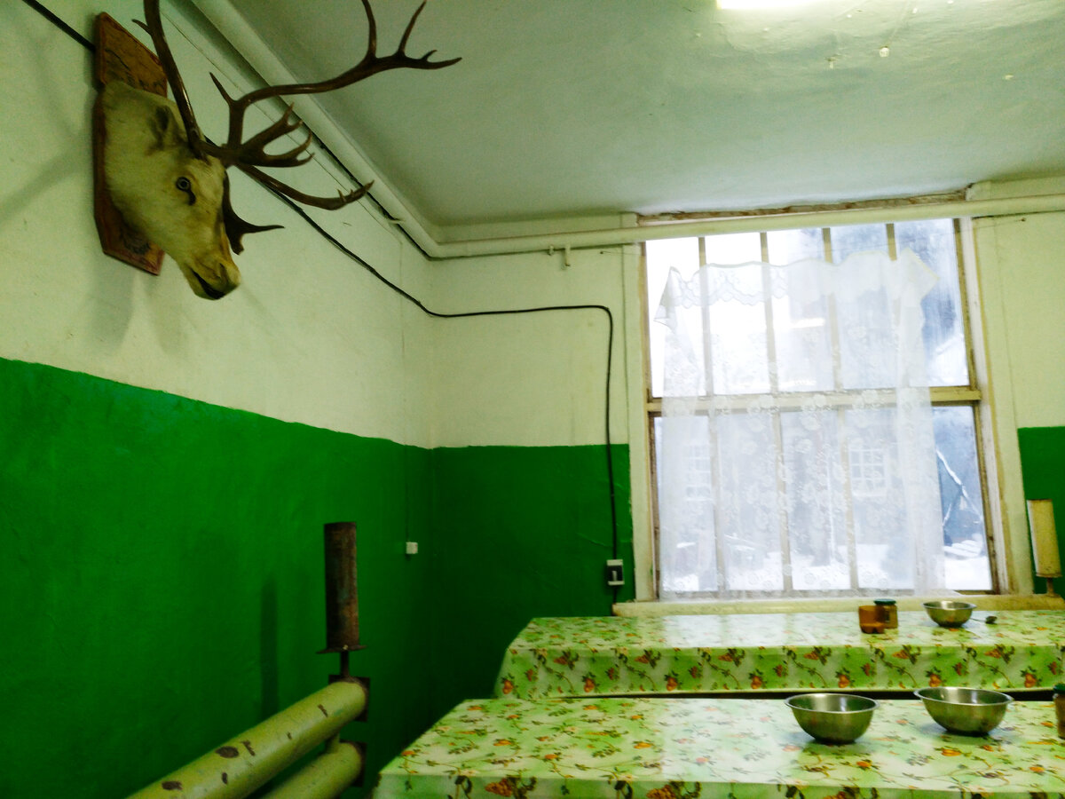 История о командировке человека в Заполярье который никогда не уезжал от дома дальше 600 километров. Подробно прочитать первую статью вы можете здесь. Выйдя из машины мы немного опешили! УАЗ стоял, как мне показалось, возле каких то брошенных досчатых двухэтажных сараев. Опережая наши вопросы, Володя сказал" Покормим сейчас вас с дороги и водитель отвезёт на квартиру" и открыв дверь в сарае скрылся за ней. Переглянувшись мы последовали за ним и очутились в помещении, где как оказалась, располагалась столовая. Встретила нас повар Светлана, женщина среднего возраста, и предложила по два-три наименования первого и второго. Экзотикой для нас была оленина, которую мы коллективно и выбрали. В столовой стояли три длинных стола и шесть таких же лавок, на отдельном столике с боку располагался электросамовар ёмкостью литров на десять и ложки с вилками, а на одной из стен красовалась голова северного оленя с здоровенными рожищами. Алексей-ещё один из монтажников, позже сообщил нам,