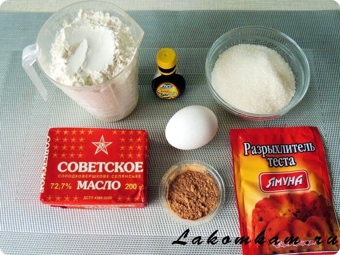 Ингредиенты. Для теста: сливочное масло – 175 грамм; сахар – 175 грамм; яйцо (большое) – 1 штука; ванильная эссенция – 1 чайная ложка; мука – 275 грамм + для присыпки; разрыхлитель для теста – 1 чайная ложка. Для присыпки: сахар – 1 столовая ложка; корица молотая – 2 чайные ложки.