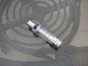 Как таковых размеров по этому малышу нету и использовать его вне кита не выйдет. В нем нету привычного 510 пина. В прочем и нету привычного дриптипа, который можно будет заменить. Верхняя часть бака является практически монолитной и сделать с нею ничего не удастся, хотя и делать то нечего. Нижняя часть плоская, хотя и обладает неким подобием пина с изолятором. С боку на нижней части базы видны пазы, которыми данный танк и фиксируется на боксмоде. Там же можно рассмотреть кольцо регулировки обдува. Стопора оно не имеет и безудержно вращается в разные стороны. Благо, что не делает это произвольно, хотя и усилий для прокручивания прилагать не придется. Заправка осуществляется через силиконовую заглушку в верхней части бака. Окно довольно большое и готово принять любую тару от любого производителя жижи. С заправкой проблем не возникнет вообще. Сам же Squid Industries Squad Atomizer вмещает в себя 2 мл. жидкости. Мой любимый момент – количество составных деталей. И у нашего протагониста и