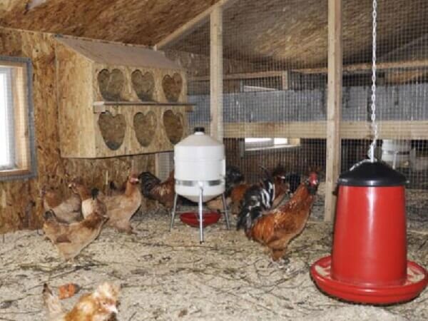 - с целью профилактики обморожения конечностей несушек, застелите землю на выгульной площадке сеном, опилками или соломой;