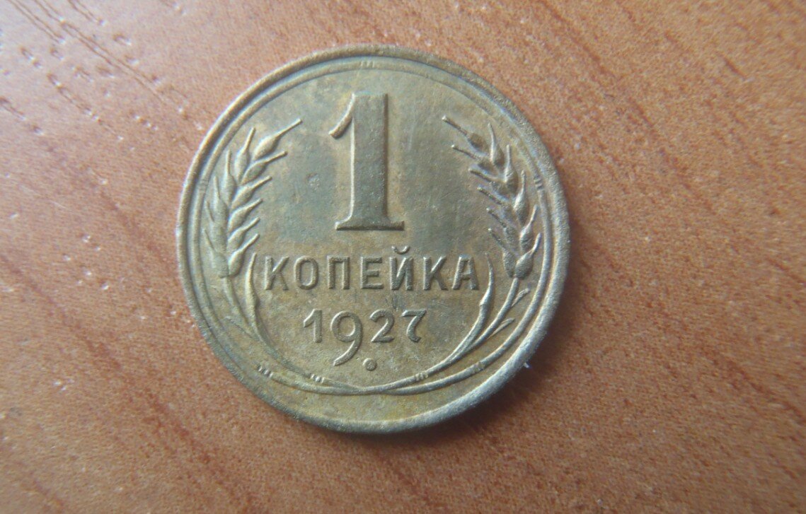 Коллекционеры знают, что 1927 год для бронзовых монет это самое то, что надо - сплошь раритеты. Но только это не относится к монете в 1 копейку. Хотя, вот такая красивая монетка, как у меня в закромах, тоже стоит не самых маленьких денежек. Аверс представлен изображением герба СССР, а также круговой надписью "пролетарии всех стран ...". А на оборотной стороне указан номинал, год чеканки и колосья пшеницы. Так вот - в такой сохранности эта обычная копеечка, весом в 1 грамм, сегодня может быть запросто продана за 300-500 рублей (в зависимости от того, где продавать). Другие бронзовые монеты имеют гораздо более интересную цену. 2 копейки стоит от 100 тысяч рублей, 3 копейки - в районе 3-5 тысяч рублей, 5 копеек - могут достигать в цене 7-8 тысяч рублей. Ну, а копеечка, видимо, выпущена большим тиражом, поэтому и нумизматическая ценность не очень большая. В те времена номинал в 1 копейку был не очень ходовым. Если вспомнить цены, например, описанные в произведениях Ильфа и Петрова об Оста