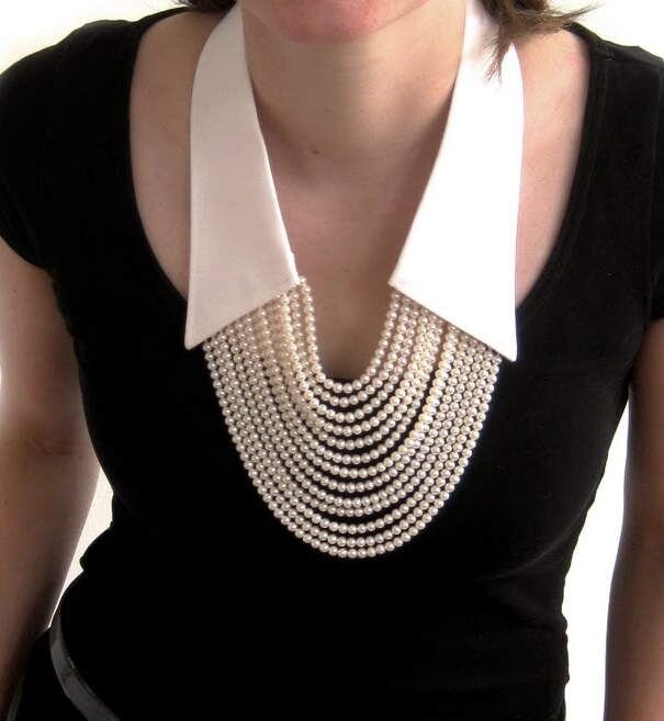 Съемные воротники набирают все большую популярность, это неотъемлемая современная часть гардероба. Яркие, красивые привлекают внимание к вашему образу. В наше время не сложно найти нужную информацию, не полениться и сделать самим этот красивый необычный предмет гардероба. Для вас я подготовила не большую но интересную подборку оригинальных воротников. Разнообразна и форма воротников, она может быть закругленной, V- образной, или полукруглый. Воротники оформленные бисером и бусинами , смотрится очень нарядно и красиво. Такой воротник можно одеть и на праздничное мероприятие. Оригинально смотрится воротник выполненный из фетра. Если вам поднадоела джинсовая рубашка, оставьте от нее воротник, он вам еще пригодиться)) Кропотливая работа обшить бисером воротник, но это того стоит. Кто дружит с крючком ,им ничего не стоит связать себе чудо воротничок и добавить изюминку в виде меха. Сочетании кружев и бусин всегда смотрятся очень красиво)). Надеюсь вам понравилась моя подборка. Всем