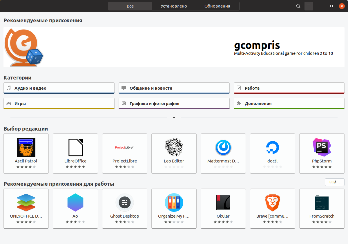 И совершенно другая ситуация в Ubuntu. Все самые популярные программы есть в "Менеджере приложений Ubuntu". Вам не надо искать где-то в интернете программы, всё есть здесь. Разумеется, некоторые программы всё же придется скачивать вручную с сайта производителя, но это больше редкие программы из разряда специализированного ПО. Например для редактирования видео.
