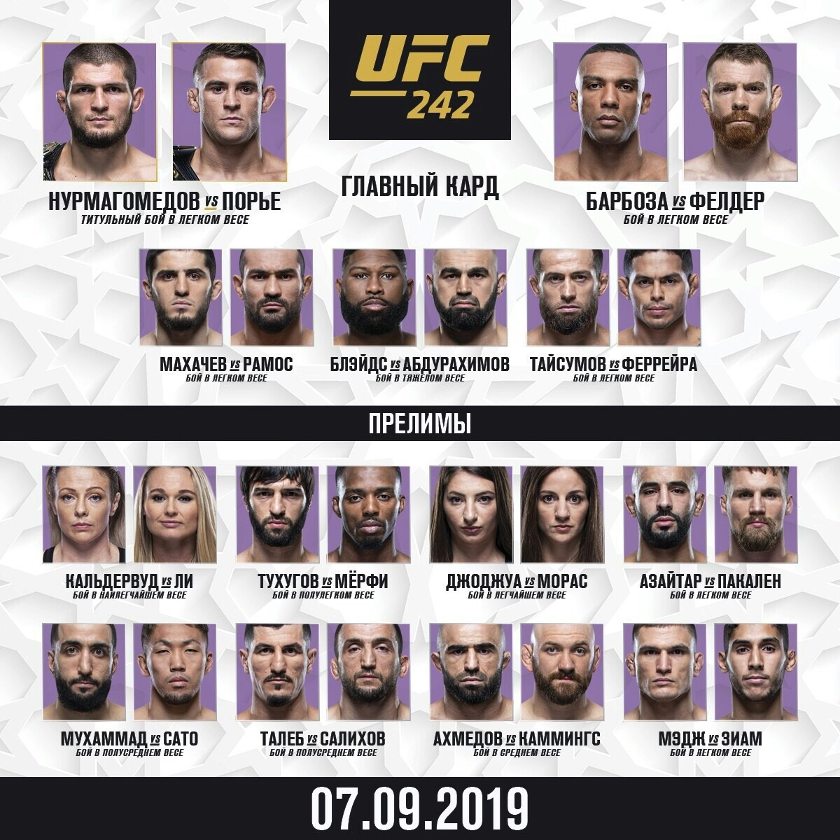 UFC 242: ГЛАВНЫЕ БОИ ВЕЧЕРА