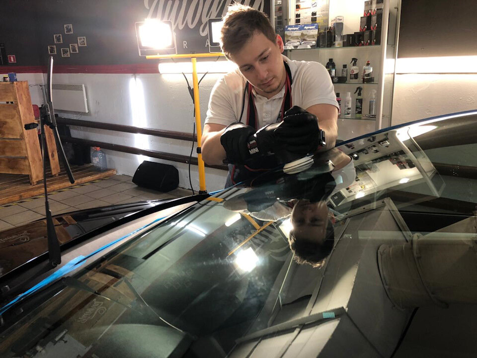 Ни для кого не секрет, что часто с возрастом или из-за случайности (забыли снять защитный колпачок с дворников, попал песок и т.п.) лобовое стекло теряет свою прозрачность. Конечно можно поменять его на оригинальное, но ценник такой процедуры очень велик (допустим панорамное стекло может стоить и 100 тыс. руб, а то и больше). Вы скажете так есть же Корея, цена с установкой от 5 тыс и все, счастье) Да, но продажа такого автомобиля будет окутана всякого рода подозрениями, да и прочность зачастую ниже, ну и почему бы не сохранить стекло с оригинальной маркировкой)) ТУТ ПОМОЖЕМ МЫ! Как Чип и Дейл мы спешим на помощь, процедура не сложная, но очень ответственная. Многие думают, что полировка стекла это как полировать ЛКП)) Но это не так, во первых в отличие от лака его тут не нужно прогревать, тут нет процесса "заправки" покрытия, тут абразивом прям пилится покрытие, по сути как шлифовка камня (только повторюсь, греть сильно нельзя). Итак, нам понадобиться специализированная полировальная п