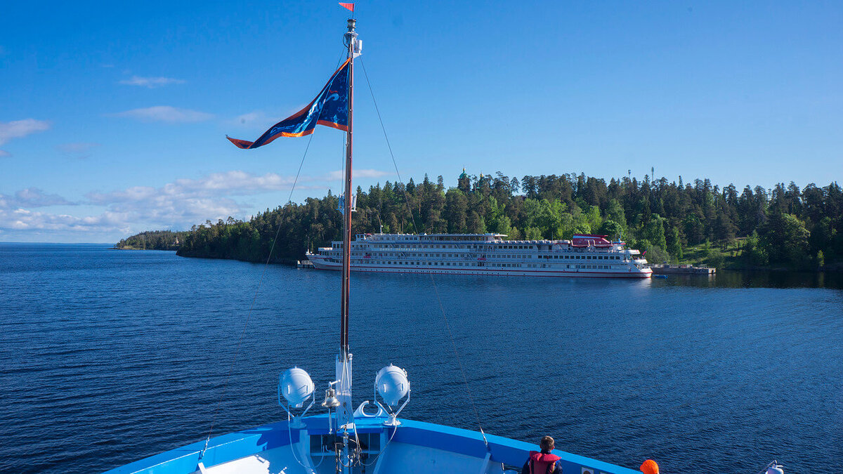 Подошла к концу предрейсовая суета на теплоходе, пассажиры высыпали на палубы, тут же подтянулись чайки. Матросы уверенно и профессионально убрали швартовые концы и судно плавно отошло от причала, устремляясь навстречу течению Невы. Теплоход неторопливо отмеряет морские мили, приближая нас к святому острову. Мы сидим в баре, в носовой части судна, и через большие панорамные окна обозреваем берега Невы. Негромкая, приятная мелодия льется из невидимых динамиков. Очень хорошо и уютно… Немного об организации и программе речного круиза на остров Валаам: После ужина на судне скучать не приходится. Концерты, живая музыка, бары, и конечно, дискотеки. В стоимость путевки, помимо размещения и питания, как правило, входят две экскурсии: одна пешеходная по скитам или по скалистому берегу, вторая - экскурсия в Центральную усадьбу (Спасо-Преображенский собор) на катере. Протяженность пешеходной экскурсии примерно 6-7 км. В Центральную усадьбу катер путь на катере занимает минут 25, и все это вре