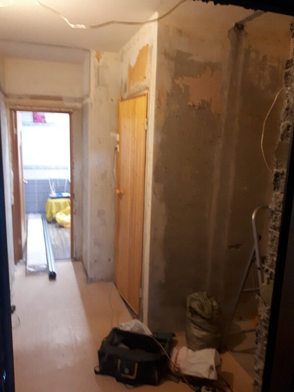 Обшил коридор панелями и снял фото всех этапов работы, от пола до потолка
