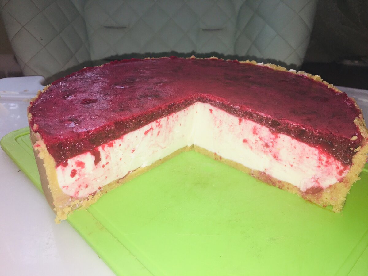 Основа: Начинка: Желе: Приготовление основы: Начинка Если вдруг будут чувствоваться крупинки желатина или комочки можно перемешать блендером до равновмерного состояния. 6. Вылить полученную массу на основу и убрать в морозилку на 30мин. Желе из пюре вишни Хотелось бы еще отметить, что мне немного не хватило сладости в самой начинке, поэтому помимо шоколада рекомендую добавить 150г сахара. Приятного аппетита!
