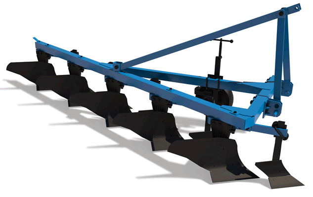 Казалось бы, что сложного может быть, в плуге. Но на самом деле каждый элемент этого сельскохозяйственного орудия несет важную функцию, конструкторами всё просчитано до мелочей. Давайте разберем устройство плуга и за основу возьмем ПЛН-5-35. Это навесной пятикорпусный плуг. Все рабочие элементы плуга крепятся на его раме. Состоит из трех металлических пустотелых балок с прямоугольным профилем. На главной балке приварены устройства крепления корпусов и предплужника. На продольной балке крепится колесо, на которое опирается рама. На полунавесных плугах с большим количеством корпусов может быть смонтировано еще одно колесо на заднем конце главной балки. Колесо регулируется по высоте, что позволяет управлять глубиной вспашки. Основной рабочий элемент плуга - это корпус. Отвальные корпуса срезают верхний слой почвы и переворачивают его, таким образом разрыхляя землю. Самые высокие нагрузки при вспашке оказываются на лемех. Он находится в нижней части корпуса, непосредственно осуществляет