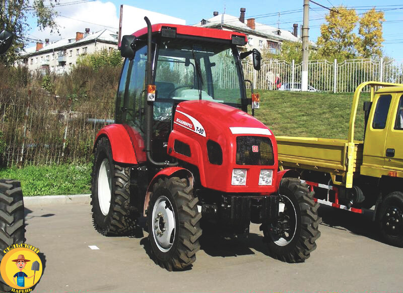 Начнём с общего. Тяговый класс данного агрегата 0,9. Внешний дизайн был изменён. Она стала выглядеть прямо как стильная "тачка". Машина проходила различные тестирования, после чего свершились изменения в лучшую сторону. Т-50 это агрегат на все сезоны. Осенью нужно убрать дачный участок? Владимирец поможет! Зимой убрать снег? Присоедините навесное оборудование и буде сделано!) У "пятидесятого" довольно много применений: вспашка земли, посев, грузоперевозка.. Габариты и вес: Весит "железный трудяга" 2,6 тонны. Поднять он может целую тонну!) Длина 3,7 метра, ширина 1,6 метра, а высота 2,5 метра) Теперь разберёмся, что у нас с двигателем....(Продолжение после картинки) Он дизельный(сразу вам информацию в лоб), а