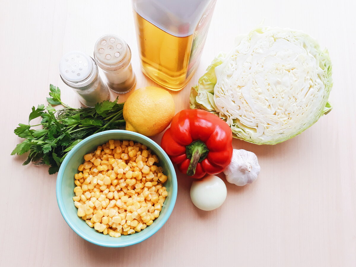 Салат с консервированной кукурузой и свежей капустой за 10 минут