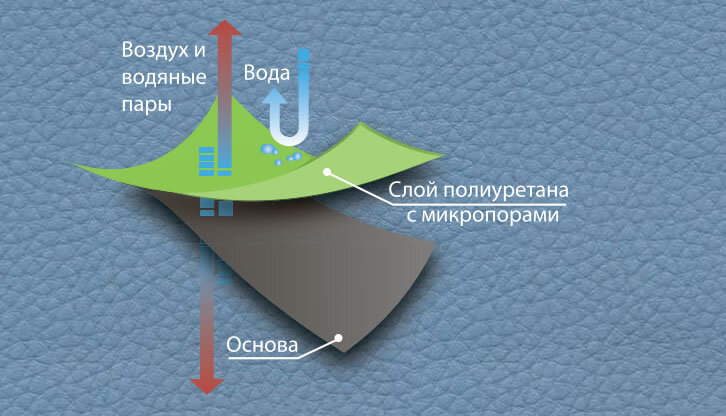 Любая искусственная кожа состоит из трех слоев - основа, пропитывающий слой(клей) и полимерное покрытие. Все различия - в том, какие материалы используются в каждом слое.артинка из интернета про слои искусственой кожи