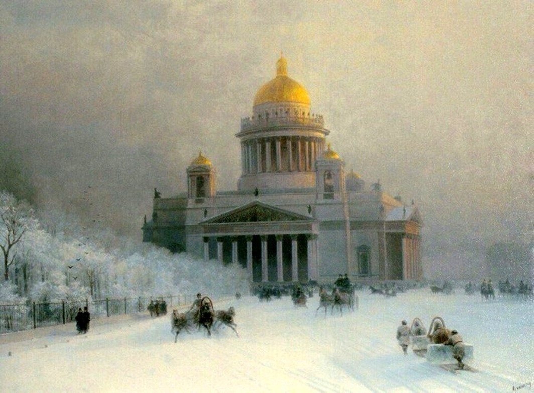 При упоминании фамилии Айвазовский в нашем разуме тут же представляется море. Айвазовский и море стали уже словами синонимами. Но есть работы, смотря на которые, трудно узнать великого художника. Особенно прекрасны его зимние пейзажи, подборку которых я вам сегодня и покажу. 1. "Исаакиевский собор в морозный день" 1891 год. Данное полотно, к сожалению, невозможно увидеть на выставках, так как находится оно в частной коллекции, поскольку в 2004 году было продано за 1,125 млн фунтов стерлингов. Но все же полюбоваться на него хотя бы в интернете стоит. Не смотря на то, что работа отличается от привычного для нас Айвазовского, она не выглядит менее атмосферно. 2. "Зимняя сцена в Малороссии" 1868 год. 3. "Александр II на замерзшей Неве" 1890 год. 4. "Зимний пейзаж" 1880 год. Но есть у Айвазовского и работы, где узнать его "руку" совсем невозможно. Например ... Графические автопортреты Айвазовского Эскиз Айвазовского «Предательство Иуды», который Русский музей бережно хранит. Работа была