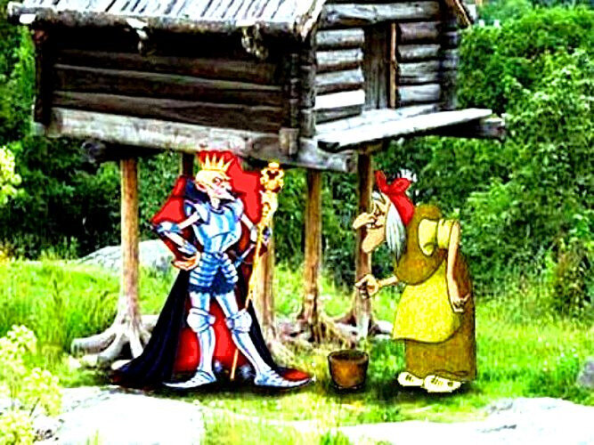 В одном царстве государстве, жил Кощей бессмертный. Правил он уже более трёх ста лет, устал Кощей от однообразия, рутины и созвал он советников. —"Слуги мои верные, дайте мне ответ, как мне настроение поднять? Что меня утешит?" —" Казни кого нибудь полегчает." —" Надоело, каждый день казню." —" На охоту отправляйся." —" Уже ездил, все кости отбил, не нужна мне ваша охота." —" О-о-о жениться тебе надо на Бабе-Яге! Ей всего лишь сто один год пошёл, молодуха совсем." —" Послать гонца к Яге! Завтра свататься поеду!" На следующее утро Баба-Яга получила письмо от Кощея. —" О-о Кощеюшка жениться на мне собрался! Так он же с минуты на минуту явится! А у меня изба не топлена, полы не мыты, да и сама я ещё не накрашена, пойду собираться скорей." Нарядилась Баба-Яга в самый лучший наряд, бусы повесила, губы накрасила, стол накрыла, и стала ждать гостей. И тут Кощей пожаловал. —" Ягуся ты моя не наглядная, скучно мне, не могу жить без тебя, только ты сможешь радость мне вернуть, выхо
