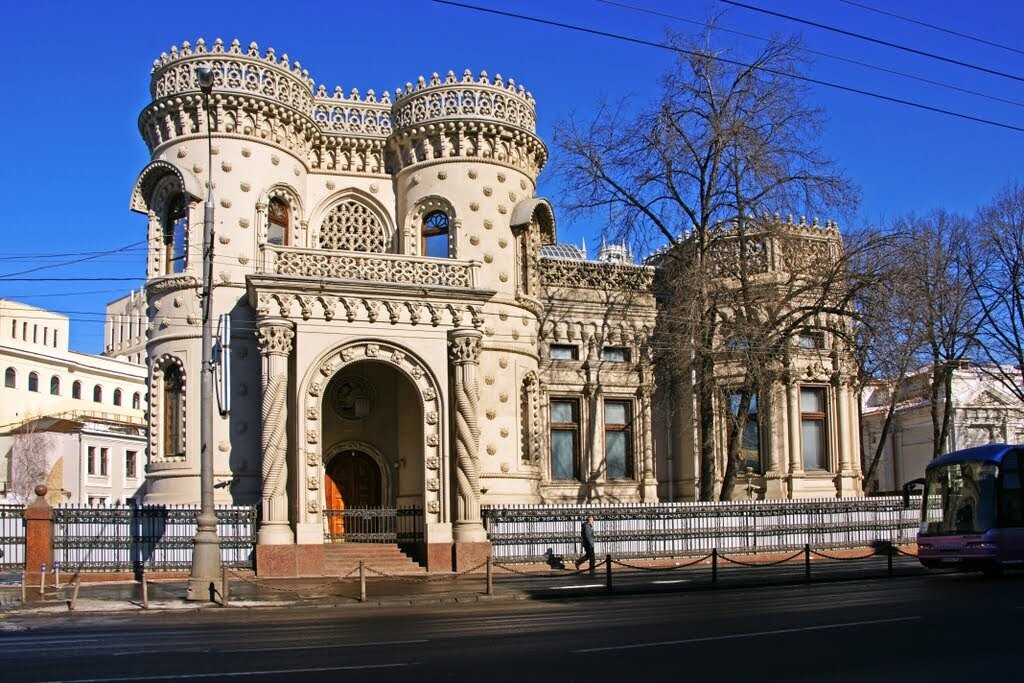 Тратил, пил, любил женщин, и радовался жизни. Однажды путешествуя по Португалии, Арсений посетил дворец Пена и был сильно впечатлен. А тут как раз маман подарила ему участочек земли, не где-нибудь, а на Воздвиженке, в 800 метрах от Кремля.... Маман, Варвара Алексеевна, была дамой строгих правил, женой "ситцевого короля" Абрама Морозова, который, оставив жене мануфактуры, умер, страдая предположительно от шизофрении. Варвара Алексеевна не стала кроткой вдовой, она взяла бизнес в свои руки, увеличила доходность предприятий в 8 раз. Постороила лечебницу для душевнобольных, больницу для онкобольных, из которой вырос сегодняшний федеральный институт им.Герцена. Она улучшала быт рабочим, а перед смертью и вовсе завещала им мануфактуры. Так вот, Арсений решил забабаха