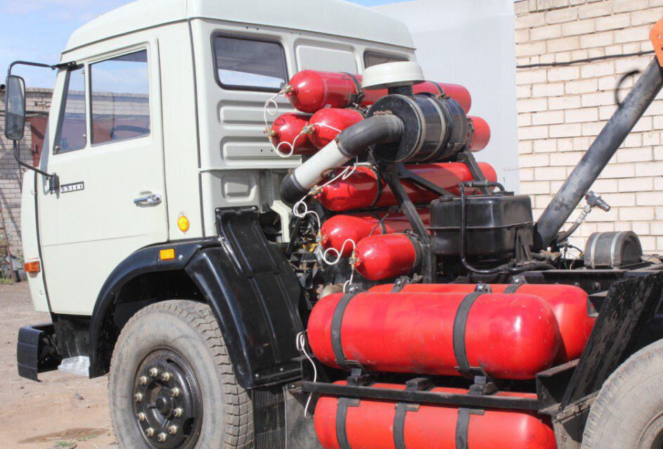 В случае газодизельного двигателя, работающего на сжиженном газе (пропане или метане) и дизельном топливе, смесь воздуха и сжиженного газа из впускного коллектора втягивается в цилиндр так же, как в двигателе с искровым зажиганием, и эта смесь сжимается для повышения температуры и давления. В конце такта сжатия смесь воспламеняется за счет впрыска небольшого количества вспомогательного дизельного топлива. Этот пилотный впрыск действует как источник воспламенения. Газо-воздушная смесь воспламеняется в нескольких местах, образуя несколько фронтов пламени. Таким образом, сгорание начинается плавно и быстро. Выходная мощность двигателя обычно регулируется путем изменения количества первичного сжиженного газа, добавляемого во впускной коллектор. Количество используемого дизельного топлива будет варьироваться в зависимости от условий работы двигателя и его конструктивных параметров, и, как правило, количество вспомогательного дизельного топлива, необходимого для зажигания, составляет от 8% д