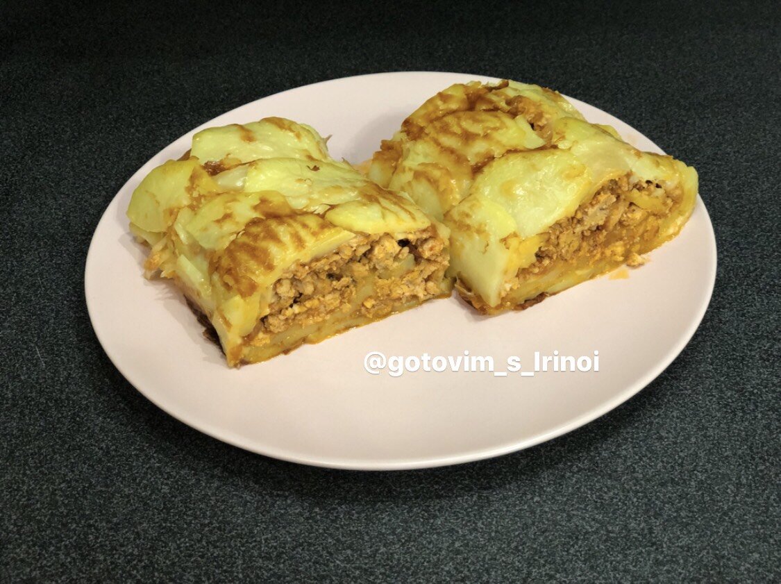 Доброе утро мои дорогие) Давайте приготовим очень вкусный картофельный рулет? Он не просто вкусный, но и подойдет для застолья - очень красиво выглядит. Что нам понадобится: 1. Картофель - 700 грамм 2. Сыр - 300-350 грамм 3. Фарш -600 грамм 4. Томатная паста - 2 столовых ложки 5. Лук - 150 грамм 6. Растительное масло - для обжаривания фарша 7. Соль, перец, специи. Приступаем: 1. Сыр натираем на терке. 2. Картофель нарезаем слайсами. 3. Немного сыра посыпаем на противень, застеленный пекарской бумагой. 4. Затем выкладываем картофель, закрывая весь противень в один слой. Солим, перчим. 5. Выкладываем остальной сыр. И отправляем выпекаться при 180 градусах 20-25 минут. 6. В это время нарезаем мелко лук. 7. Обжариваем лук на растительном масле. 8. Как только лук станет прозрачным добавляем фарш. Солим, перчим, добавляем специи и тушим около 15 минут. 9. Затем добавляем томатную пасту, немного воды и тушим 2-3 минуты. Оставляем. 10. Как картофель испечется, достает его и немного остужаем. С