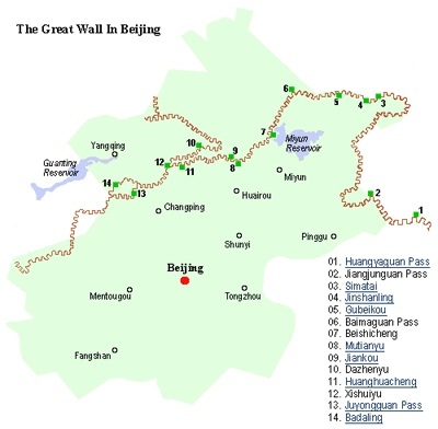 Ну что же, давайте поищем это так называемое таинственное место "неправильной" стены. И вот же оно! Дело в том, что стену обычно представляют как прямую линию, но на самом деле она бывает сильно закручена. Вот у стены Бадалин (самая посещаемая часть Китайской стены) - сразу видно три участка где обычный и наивный турист увидит "неправильное" положение бойниц на с