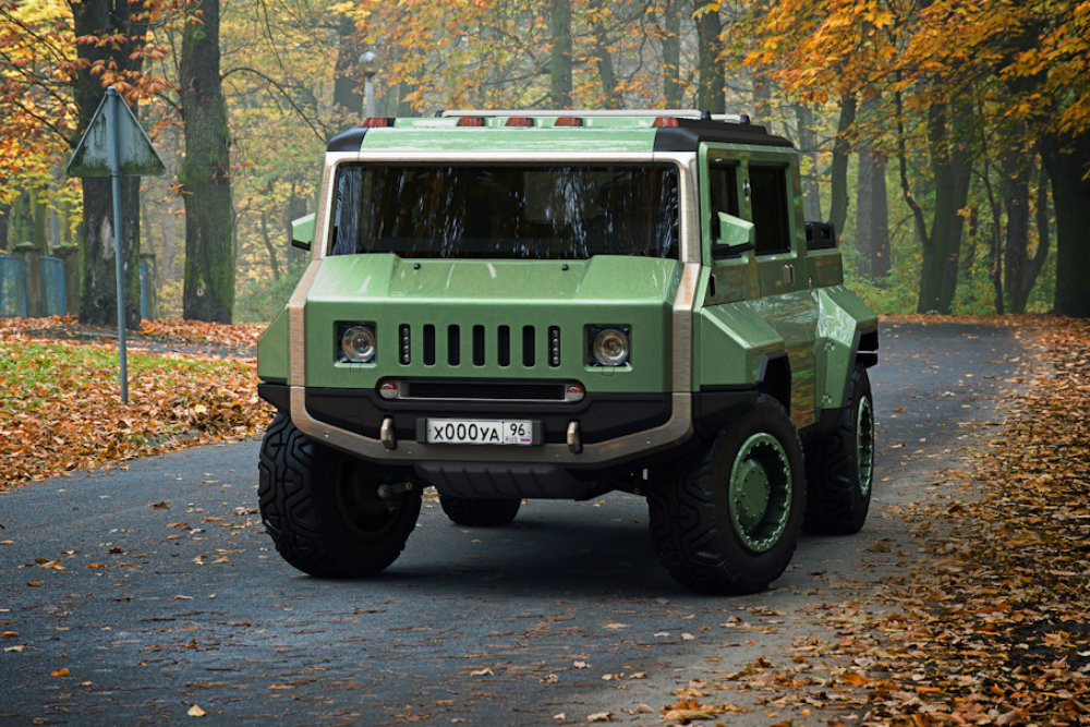 В Сети показали дизайн-проект необычного гибрида УАЗа "Буханка" и Hummer. Свою работу разместил на сайте cardesign.ru независимый промышленный дизайнер Александр Исаев. Россиянин решил скрестить "ульяновского" "проходимца" с не менее легендарным американским "Хаммером". Именно так могло бы выглядеть новое поколение легендарной "Буханки" в параллельной вселенной. Стилистически в разработке угадывается облик УАЗа, при этом без проблем читается и облик Hummer Н2. Обе модели объединяет "квадратный" силуэт, крупная решетка радиатора и круглые фары. Концепт "Буханки Next" получил имя - "H-UAZ". По задумке, внедорожник имеет рамную конструкцию, на которую надстроен кузов с оригинально изогнутыми модульными панелями, что является практичным решением - позволяя защитить со всех сторон наиболее уязвимые стекла. Брутальный автомобиль может быть построен в модификации пикапа и фургона с надстройкой кузова. В пассажирском исполнении в салон могут поместиться до восьми человек, причем задние сиден