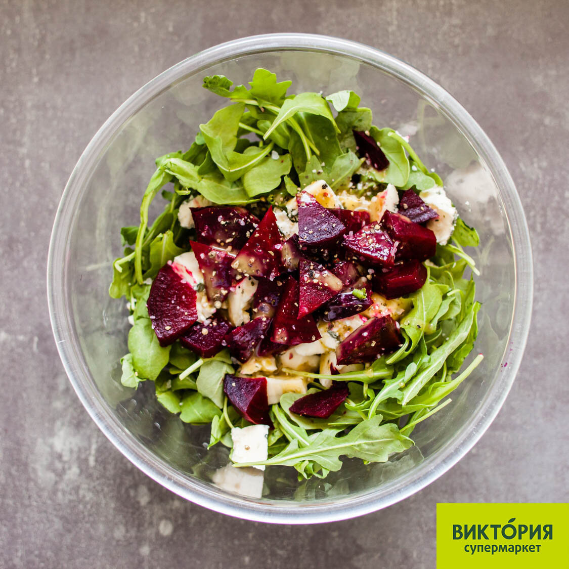 3 порции 10 минут Вам понадобится Фета 100 г. Салат ½ пучка Грецкие орехи 1 горсть Подсолнечные семечки по вкусу Свекла 300 г. Для маринада: Оливковое масло 3 ст. л. Бальзамический уксус 2 ст. л. Мед ½ ч. л. Соль по вкусу Способ приготовления Шаг 1 Запечь свеклу, обернув в 2 шара фольги, в духовке при 200 гр, 1–1,5 часа в зависимости от размера свеклы до мягкости. Для маринада: смешать указанные ингредиенты. Шаг 2 Нарезать свеклу тоненькими ломтиками, залить маринадом, перемешать и оставить на 2–3 часа. Промыть салат и порезать. Шаг 3 Уложить салат, свеклу с маринадом. Уложить сверху фету, полить оставшимся маринадом. Подавать, посыпав орехами и семечками. Оригинал рецепта размещен здесь: https://clck.ru/HzbVn