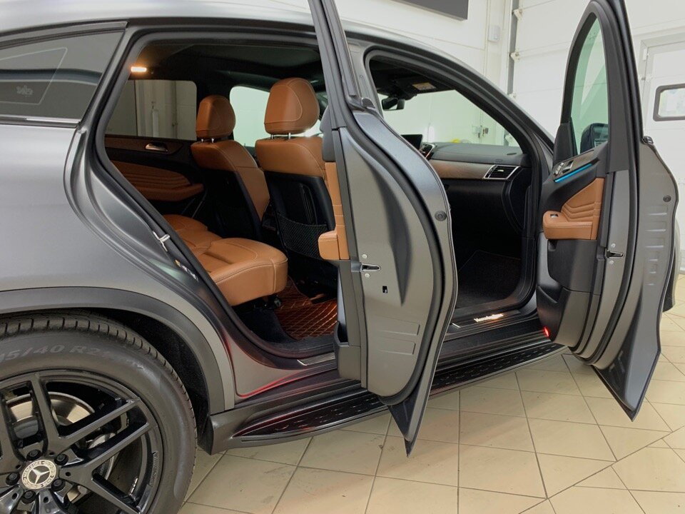 Оклеили весь кузов в серый сатин. Не оставили без внимания дверные проёмы и внутренности дверей. Крышу, плавник и заднюю саблю багажника оклеили в чёрный глянец.
