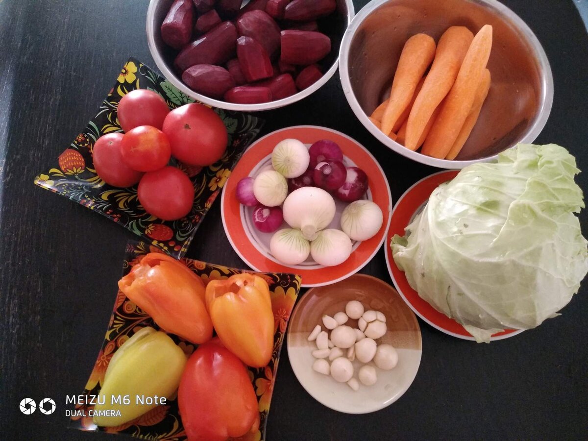 Все отправляем в кастрюлю, добавляем 400 гр подсолнечного масла (без запаха), 3 ст.ложки соли и 3 ст. ложки сахара, хорошо перемешиваем и тушим под крышкой на среднем огне периодически перемешивая, нужно следить, чтоб не подгорело. Через 1 час добавляем 1 ст. ложку 70% уксуса и по желанию можно добавить зелень (петрушку, сельдерей, укроп), но я зелень не добавляю, ее добавляю зимой уже в кастрюлю. Тушим ещё 10 минут с уксусом, после чего раскладываем в чистые стерилизованные банки и закручиваем стерилизованными крышками. Переворачиваем и прячем "под шубу" до полного остывания. После этого убираем на хранение в прохладное место.