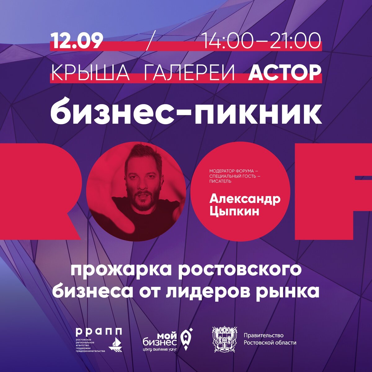 Бизнес-пикник – это событие, которое нельзя пропустить. 12 сентября на одной из самых модных площадок Ростова – крыше галереи «АСТОР» – соберутся известные практикующие бизнесмены, чтобы поделиться опытом и новыми идеями. Они расскажут, как справляться с трудностями, которые могут ожидать предпринимателя, разберут на примерах реальные сложные ситуации и ответят на твои вопросы. Бизнес-пикник – это отличная возможность поговорить с крутыми специалистами в формате открытого и честного общения. Модератором форума выступит экс-PR-специалист и популярный писатель Александр Цыпкин. После дискуссии тебя ждут выступления CostaRica, DJ Mike и шоу Standup комиков. Вкусные угощения от разнообразных фуд-кортов и утопающие в зелени релакс-зоны располагают к непринужденному общению и новым деловым знакомствам. Организатором форума выступила АНО «РРАПП» – управляющая организация центров «Мой бизнес» в Ростовской области. Бизнес-пикник проводится при поддержке Министерства экономического развития РО