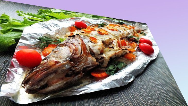 Рыбное блюдо для гурманов простое в приготовлении и по времени займет примерно сорок минут, что касается ценности то одной порции содержится 810 ккал, 41г. белков , 30г. жиров, 83г. углеводов.