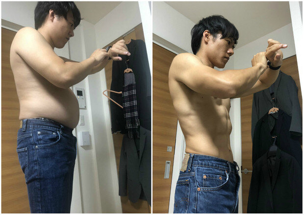 Хотя мы бы предпочли 30-секундное упражнение. Кто из нас не мечтал сбросить лишний вес, обрасти кубиками и срывать восхищенные взгляды проходящих женщин, как спелые яблоки в сентябре? Только те, кто и так давно скинул вес и оброс кубиками (или не любит яблоки). Но таких немного. Большинство останавливается на этапе покупки абонемента и пробного занятия в зале. Некоторые держатся неделю-другую, поражая домашних своим героизмом. Но потом все равно срываются и меняют вечер в спортзале на вечер просмотра сериалов. Мы их не виним! В современном ритме жизни, когда с утра до ночи пропадаешь на работе, последнее, что хочется, — это пропадать еще и в спортзале. Но, как выяснилось, привести себя в форму можно без абонементов и многочасовых упражнений — достаточно каких-то жалких четырех минут в сутки. Твиттерчанин из Японии @hiiragisensei взволновал азиатский, а следом и европейский Интернет собственным волшебным преображением. Еще в марте он вывесил в «Твиттер» фотографию своего дряблого тел