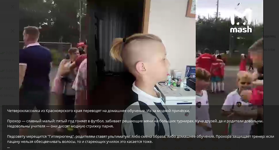 «Изю не надо нюхать. Изю надо учить» — эта фраза из старого анекдота очень точно отражает, какие приоритеты должны быть в школе. Имеет ли право учитель делать замечания ученику из-за его прически? Помнится, в прошлом году пару раз случались скандалы по этому поводу. Один — из-за девочки с розовыми волосами, которую не допустили до занятий, и которая оказалась дочкой местного депутата, даже шум на пол рунетика разразился — мол, чего это учителя себе позволяют? Вот и этот год вроде как еще толком не начался, а разборки уже тут как тут. В этот раз из-за мальчика-четвероклассника, с выбритыми висками и обесцвеченным хвостиком на затылке. Вы знаете, я, конечно, сторонник красиво и ровно подстриженных детей. Не знаю, откуда это проявилось — может быть с возрастом, потому как в юности пытался что-то там творить с волосами, подростка это одна из форм выражения своего протеста обществу. Причин протеста может вообще не быть (вот сейчас я их не помню), но тогда казалось, что моя голова это
