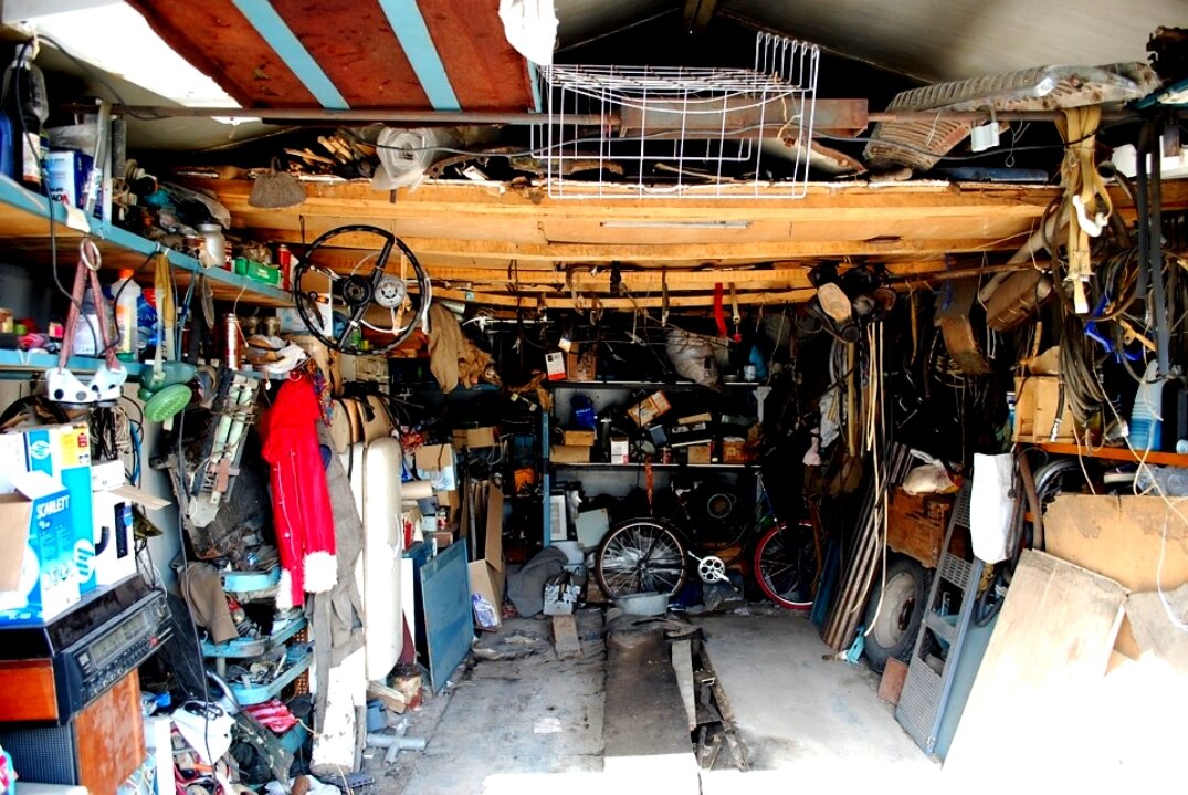 О захламлении гаража я уже писал, но недавно пришлось убедиться, что эта проблема, как говориться “живее всех живых”. У знакомого потекла крыша гаража и он ко мне обратился с просьбой помочь устранить течь и как можно недорого. В гараже, когда я приехал была очень похожая на фото картина. Мне даже стало очень интересно, а как туда помещается автомобиль? Хозяин продемонстрировал, что-то похожее на цирковой номер, сам он примерно под сотню килограмм. Он как-то умудрился вылезти, хотя я еле втискивался между вещами и машиной. Крышу мы отремонтировали с помощью битумной мастики и песка. Вскрыв места протекания и выкинув старый рубероид. Возник вопрос, а как изменить и упорядочить подобное нагромождение в гараже? Для этого есть несколько способов. Первый, самый крутой, собраться с духом или нанять кого-то со стороны и выкинуть все, практически не разбирая. Второй, так сказать, более мягкий, хотя и кропотливый, перебрать все в гараже и рассортировать по степени важности и необходимости,