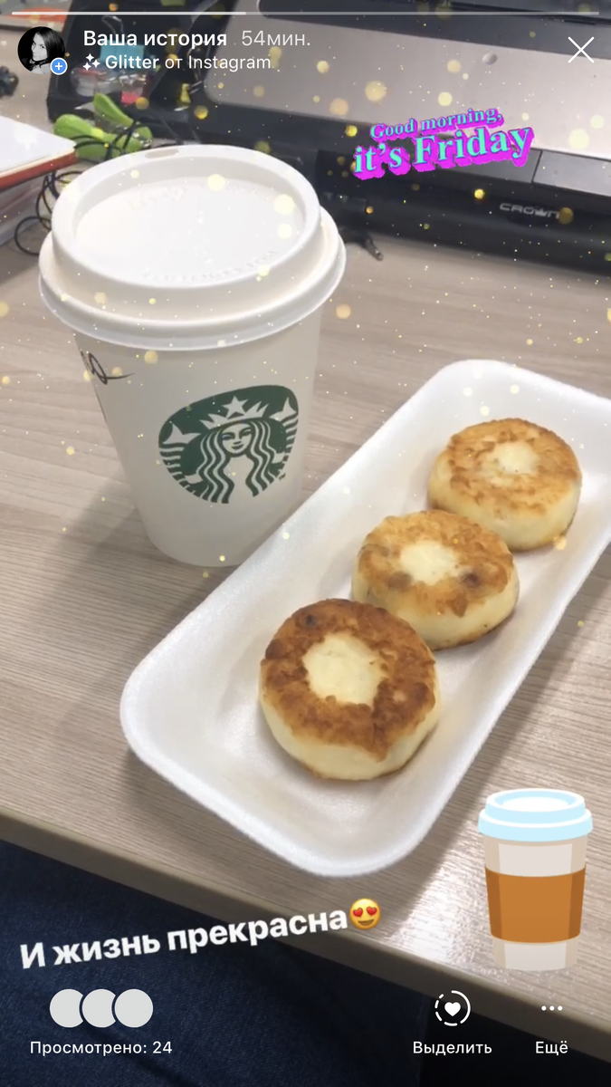 В пятницу всё было прекрасно. Утро началось идеально, завтракала вкуснейшими сырниками и купила по акции кофе в Старбакс. На обед была опять курица тушеная и макароны (наконец-то доела!) с салатом овощным. Ужин - тоже самое, что и на обед. После работы пошла в тренажерку. Учитывая, что это была пятница, это вообще для меня подвиг!) Тренировалась 1 час, 20 минут уделила силовым упражнениям на тренажерах, 40 минут занималась кардио. На субботу были грандиозные планы, но в итоге предпочла отдохнуть и погулять на день города. Питание: Завтрак - омлет, сырок творожный со сгущенкой, кофе Обед - 2 кур. котлеты, овощной салат, виноград Потом я встретилась с подругой и мы гуляли на ВДНХ. Надолго нас не хватило, потому что народу нереально много было, прям толпы, а особо ничего интересного не происходило. В итоге мы поехали к ней на район, там спокойно погуляли и я заночевала у нее. И день был бы прекрасен, если бы не погрешности в питании. Я съела блин Фермерский в Теремке, пили пиво и вино, и