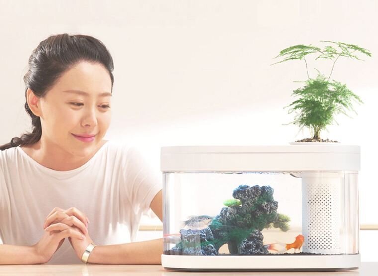 Xiaomi Lucky Amphibious Geometry Fish Tank Aquaponics Ecosystem – довольно необычное и привлекательное устройство, которое позволяет содержать рыбок в аквариуме и вместе с тем выращивать растения. У него есть ряд очевидных для профессионалов недостатков, вроде не самого пригодного для растений грунта и не самой большой вместительности резервуара.