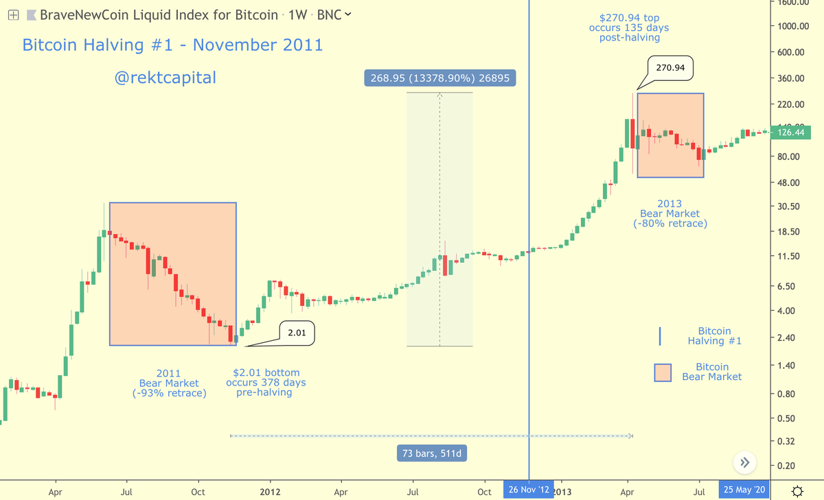 Исторически сложилось так, что халвинг биткоина оказался важным катализатором, который подталкивал биткоин на новый бычий рынок, но повторится ли история в этот раз? В этом посте рассмотрим тенденции после двух прошлых сокращений, пытаясь найти корреляции на графике цены, и прикинем, что ждать от халвинга в этот раз. Разберём всё по полочкам.