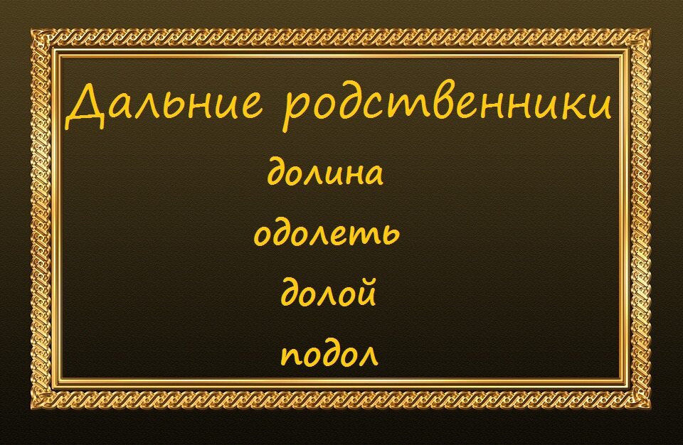 Это может показаться невероятным, но слова долина, долой, подол и одолеть - птенцы из одного гнезда. В смысле, ближайшие родственники. Однако сейчас об этом догадаться сложно: так далеко их разбросала жизнь. Помните выражения "по горам, по долам", "опустить глаза долу"? Так вот, дол - это низ, нижний край. Слово подол имеет несколько значений. Среди них: нижний край платья и ровная низина под горой. А долина - низина. Зная это, легко догадаться, что одолеть - это взять верх, повергнуть в дол (вниз), А слово долой тоже образовалось от дол. Не дошедшее до нас слово долови означало сбросить вниз, выбить из седла. Впоследствии из него выпала буква в, и получилось слово долои, трансформировавшееся в привычное нам долой.