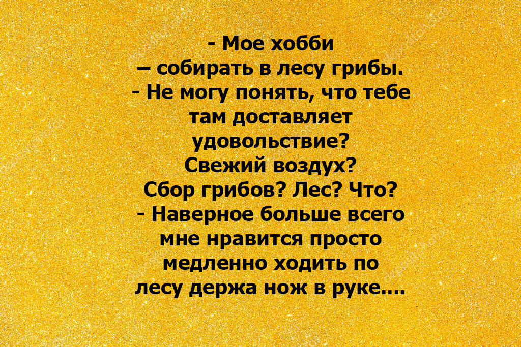 - Не могу понять, что тебе там доставляет удовольствие? Свежий воздух? Сбор грибов? Лес? Что?