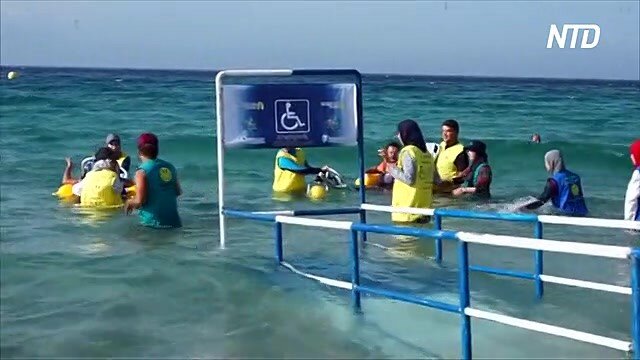 На пляже города Танжер выстроился ряд людей с ограниченными возможностями в инвалидных кресла, желающие искупаться. В городе было все готово для того, чтобы помочь людям ощутить наслаждение от купания. В этом и, конечно, помогали добровольцы, волонтёры. На пляже было всё нужно для людей с ограниченными возможностями, так же и специальные туалеты. Прошлым летом на этом пляже искупалось более 500 людей с инвалидностью. Все эти услуги предоставлены инвалидам бесплатно!