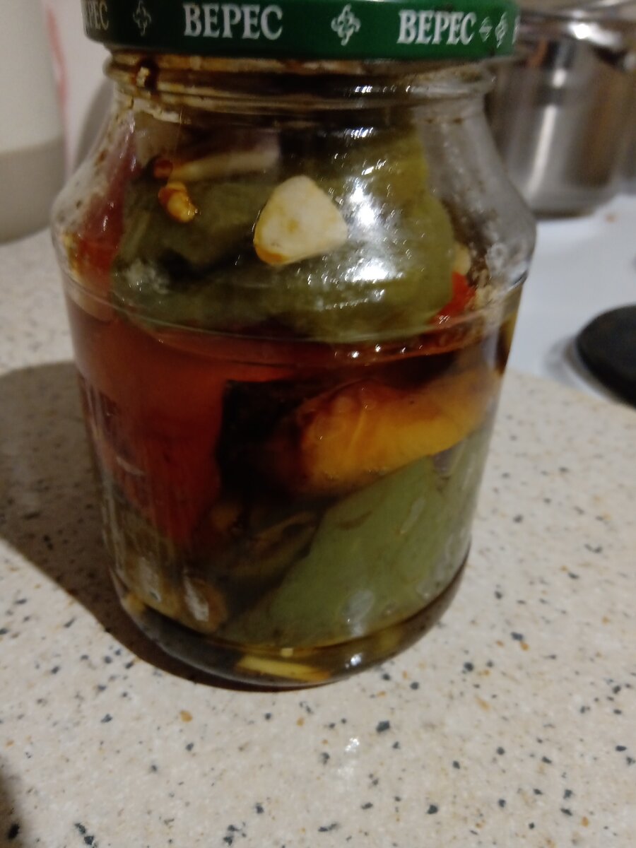 Хочу предложить рецепт жареного перца на зиму на закуску. Этот вкусный перчик можно использовать как закуска или для приготовления других блюд. Получается пряный вкус с чесночным ароматом. Можно добавить не много горького перца если вы любите по острее. Это все индивидуально и только на ваш вкус. Банки лучше использовать не большие, чтоб быстрее съесть и он долго не стоял. Для нашего перца нам понадобиться на 0,5- 0,7 банку: Перец сладкий болгарский столько сколько войдет в банку Масло растительное для жарки Столовый уксус 9% - 40 мл. 2 зубчика чеснока сахар 40 гр. 1 ч. ложка соли Способ приготовления: Способ приготовления не только прост, а очень прост и не потребует много времени. Только нужно банки простерилизовать и обсушить, а крышки прокипятить. Можно перчики помыть и обжарить на растительном масле, но мне больше нравится когда перец почищенный от плодоножки и семян. По этому выбирайте сами. Обжариваем на сильном огне под крышкой со всех сторон, чтоб наш перчик был румяный. З