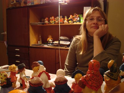 — Начиналось все с благословения. Без него куклы никак не удавались, — рассказывает Валентина, — Не было в них чего-то самого главного — характера, темперамента, что ли. А как получила благословение, словно ожили в руках, и один за другим стали рождаться новые образы". Валентина Петрунина закончила Ростовский инженерно-строительный институт, архитектурный факультет. Работала на Соловках. В 1986 году переехала в Москву, тогда же и стала пробовать лепить из теста. Посмотрите, каждая из кукол имеет свой характер, свою душу, если это приемлемо к игрушкам, просто светятся изнутри. Образы близкие и понятные. Для создания своей коллекции Валентина Петрунина по крупицам собирала уникальные материалы о костюмах разных губерний. И характеры, и