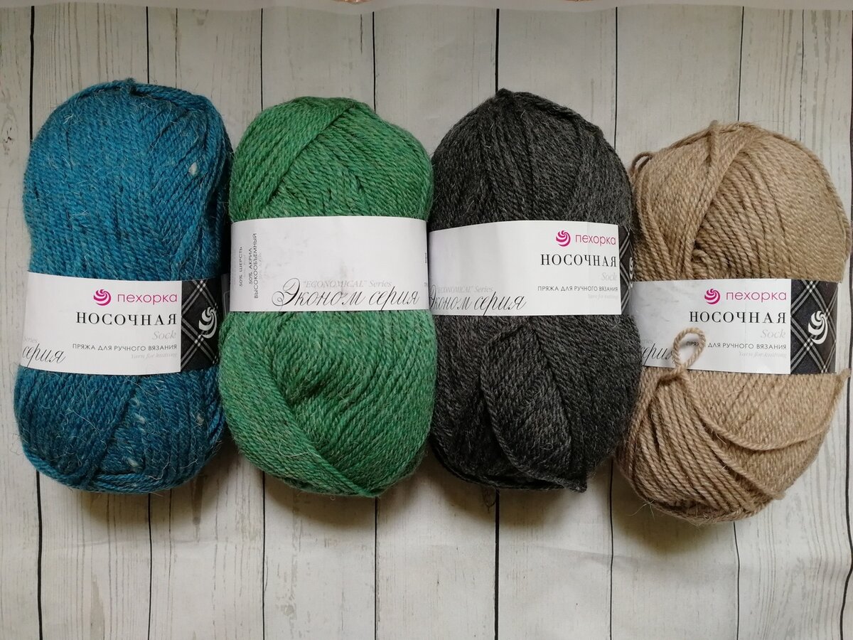 Всем привет! Спешу поделиться своим впечатлением о пряже, которую на прошлой неделе получила в посылочке - "Носочная" от Пехорки. Итак, продается пряжа моточками по 100 г, длина нити в мотке 200 м. В упаковочке 10 моточков. Производится в России, бюджетная.