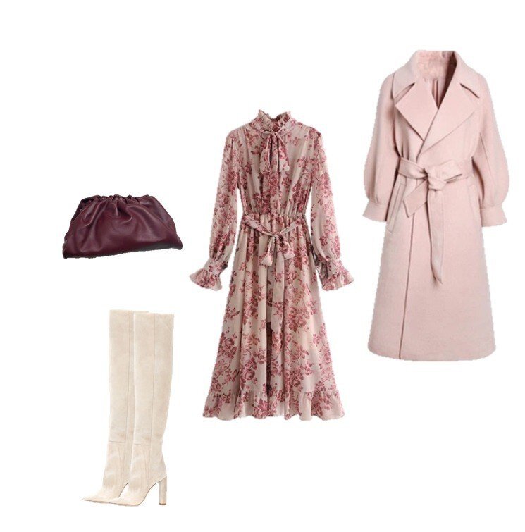 🌺Весь образ должен транслировать нежность, мягкость и легкость. Ниже 3 образа, которые я собрала для вас из товаров, которые можно купить на #aliexpress Первый образ я собрала из платья нежно-розового цвета с цветочным принтом, молочных замшевых ботфорт на каблуке, которые придад