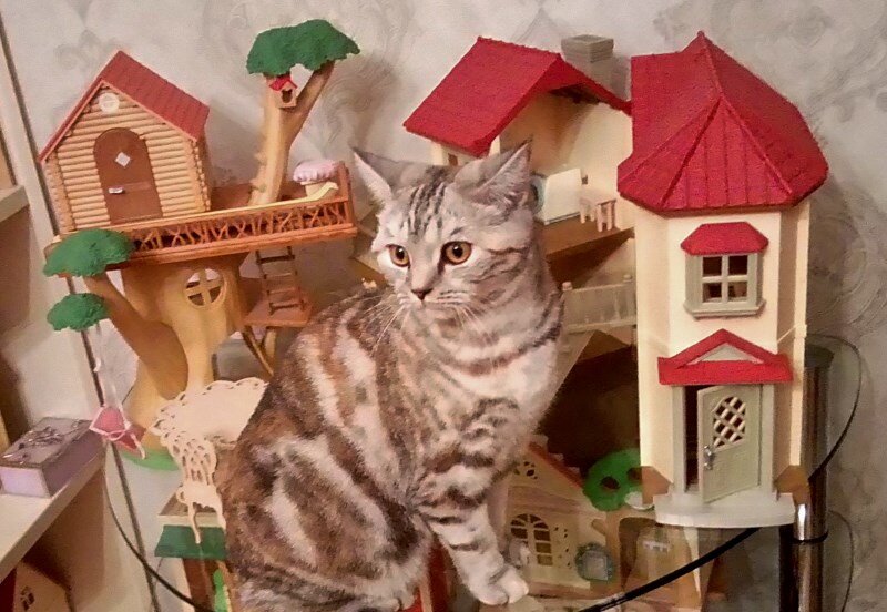 Пошел смотреть, что на этот раз натворила. Так и есть. На полу лежит пластмассовый шкафчик из кукольного гарнитура, а его содержимое рассыпано по всей комнате. Виновница безобразия даже удрать не попыталась. Сидит на стеклянной тумбе возле кукольного дома с большими невинными глазами и предлагает всем поверить, что "оно само упало". Дочь между тем в который раз терпеливо собирает с пола мелкие пластмассовые предметы и складывает обратно в шкафчик, наводя порядок в игрушечном доме. Мы давно уже предлагали ей подарить кому-нибудь это сооружение . В куклы все равно давно не играет, а дом стоит без толку, лишь пыль собирает. В свое время он, конечно, важную роль сыграл. Когда дочь написала Деду Морозу, что надо бы для ее к