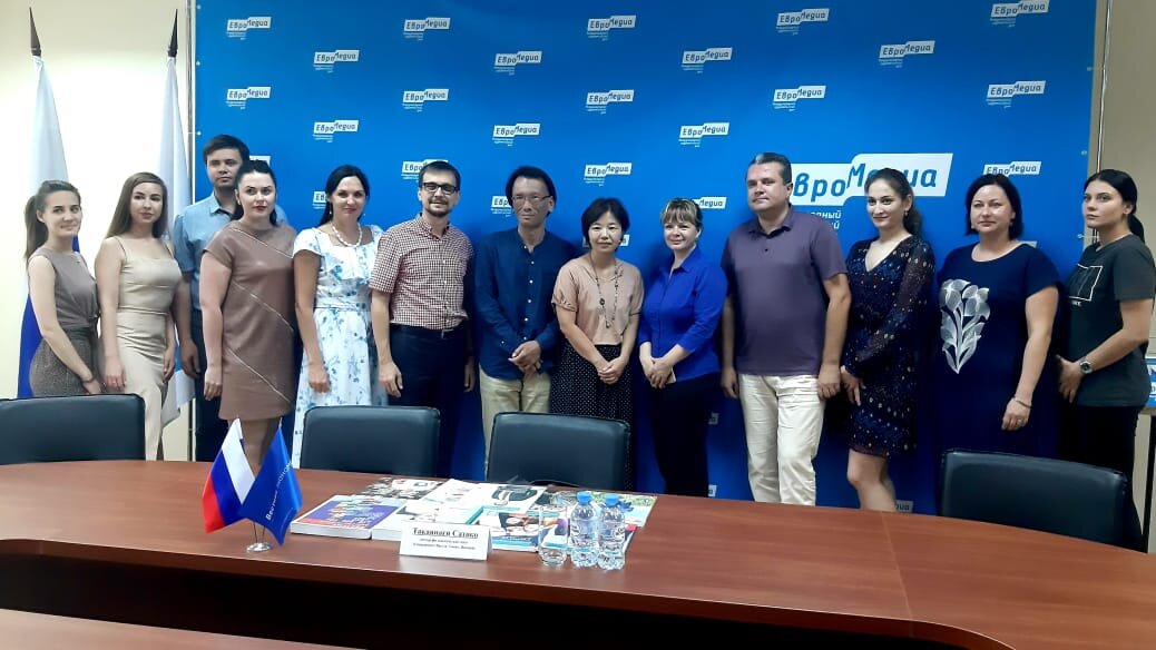 Международный издательский дом «ЕвроМедиа» посетили Такаянаги Сатоко и Такэси Сайто, эксперты из ведущих вузов Японии, которые преподают русский язык и изучают культуру советского периода, основываясь в том числе на прессе тех лет. В процессе встречи обсудили как современные медиатренды, так и исторические различия российских и японских СМИ. Доктор филологических наук Такаянаги Сатоко преподает русский язык в одном из двух самых престижных университетов Японии — университете Васэда в Токио. Госпожа Сатоко изучает советскую женскую прессу. О причинах своего интереса она сказала так: «Раньше я изучала только советскую литературу, но почему-то в это время женщины практически не писали, за исключением Ахматовой и Цветаевой, но хотелось видеть и женский взгляд, поэтому я стала читать женскую прессу, что со временем переросло в научную деятельность». Господин Сайто — преподаватель русского языка и литературовед. Преподает в японском женском университете (Токио) и изучает российскую культуру.