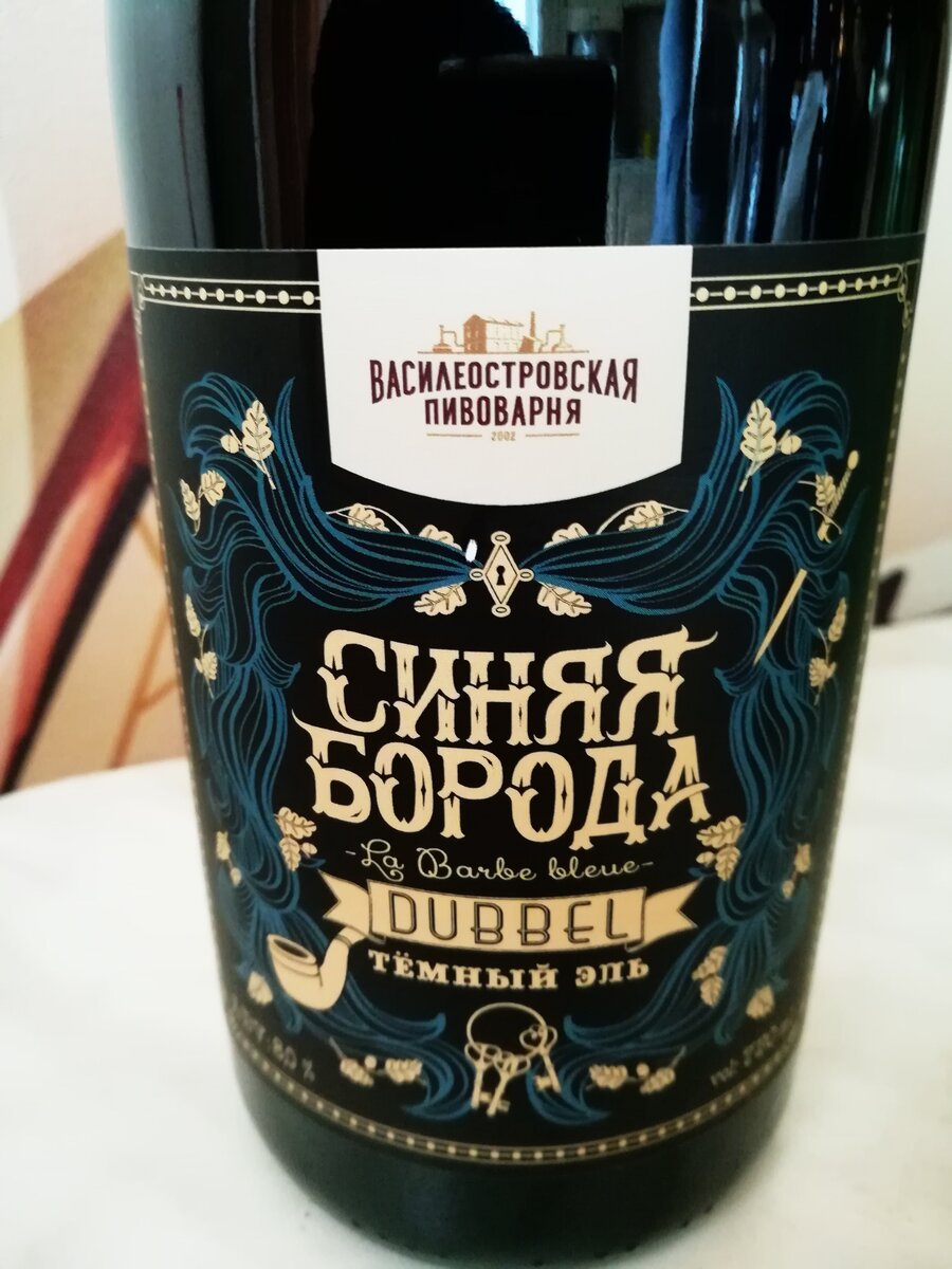 Всем привет! Ну что же, настала осень. На улице немного запрохладнило и сразу же захотелось чего нибудь тёмного, плотного, крепкого, вкусного. На выходных с женой зашли в наш любимый магазин разливного пива "Пифкофф". Из всего представленного ассортимента вкусного крафта, решили взять бутылочку простого пива (без добавления всяких соков, пюре и других вкусных добавок), сваренного в традиционном бельгийском стиле. Называется данное пиво - Dubbel "Синяя борода". Сварено на мощностях Василеостровской пивоварни. Бутылка имеет объем 0,75 литра,как у шампанского. Цена данного пива - 170 рублей, что вполне недорого за такой объем. Состав: вода, солод ячменный светлый, солод карамельный, концентрат пивного сусла, хмель, пивные дрожжи. Для того, чтобы сварить данный сорт эля, пивовары применили четыре бельгийских разновидности солода: Chateau Special B; Chateau Munich; Chateau Aroma; Chateau Pale Ale. Описание: Производитель: ООО "Василеостровская пивоварня", г. Санкт-Петербург