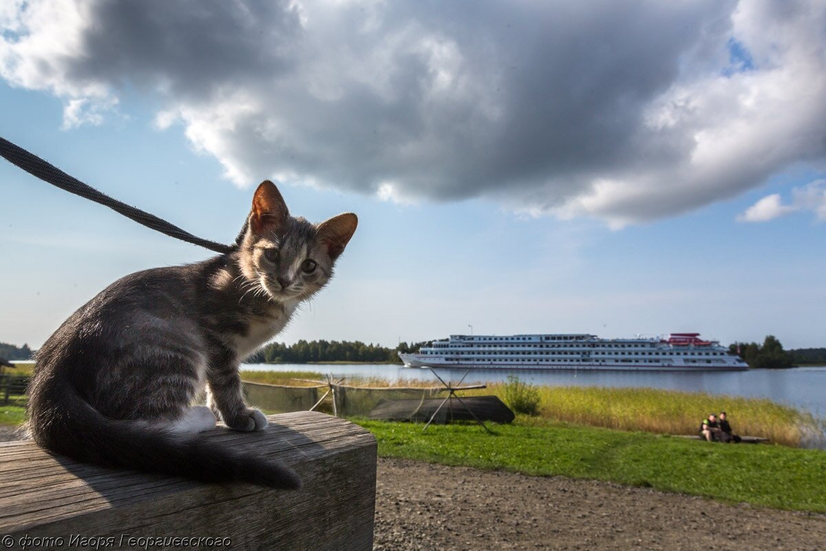 Животные в музее: кошка Шухлядка в Музее "Кижи" в Карелии
