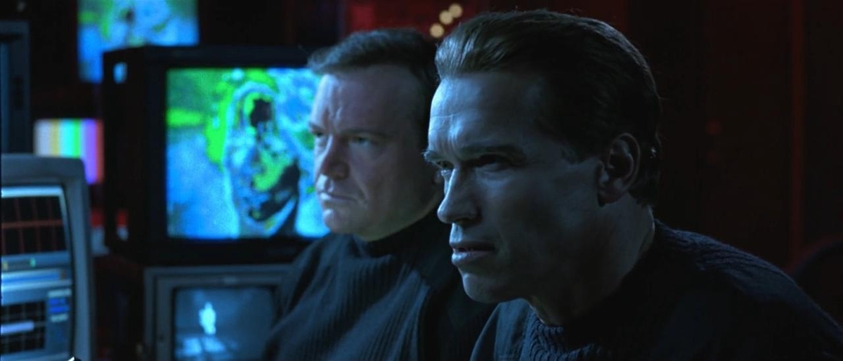 Так вот, в боевике со Шварценеггером, казалось бы, нет места визуальному юмору и юмору в принципе (хотя я, конечно, преувеличиваю), но Кэмерон преуспел и здесь.