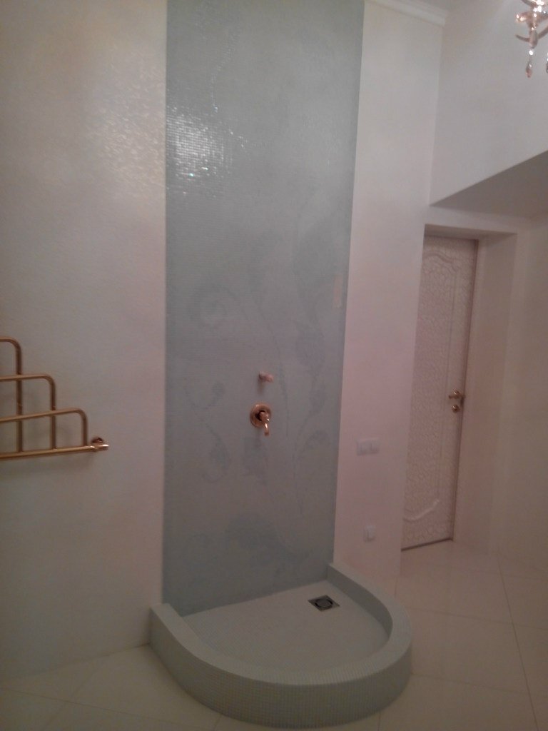 Добрались до укладки мозаики в душевом поддоне. Собственно, сложного ничего нет. Клади себе да клади... Дело житейское. Вот только с выбором клея нужно определиться. Мозаичные мраморные кубики размером 1,5*1,5*1 см приклеены обратной стороной на стеклосетку УСЛОВНО! водоНЕрастворимым клеем ПВА D3. И такой способ крепления практикуют очень многие производители мозаики. Хорошо хоть картонной сетки в усилении тут не было). Чем это грозит, если мы поклеим мозаику на цементный клей в водонагруженном месте и затрём цементной затиркой? Всё просто. В душевом поддоне такой способ ещё прокатит, а вот в бассейне уже нет. Природный материал всегда имеет свои микротрещинки, абсолютной водонепроницаемости мы гарантировать не можем. При постоянном давлении воды (даже капиллярном), клей, которым приклеена сетка, начинает разбухать. Увеличиваться в объеме. Давить изнутри на мозаичинки. Ну, и выдавливать, само собой(. Вода по сетке идёт дальше, лавинообразно расширяя ареал своего нехорошего действия.