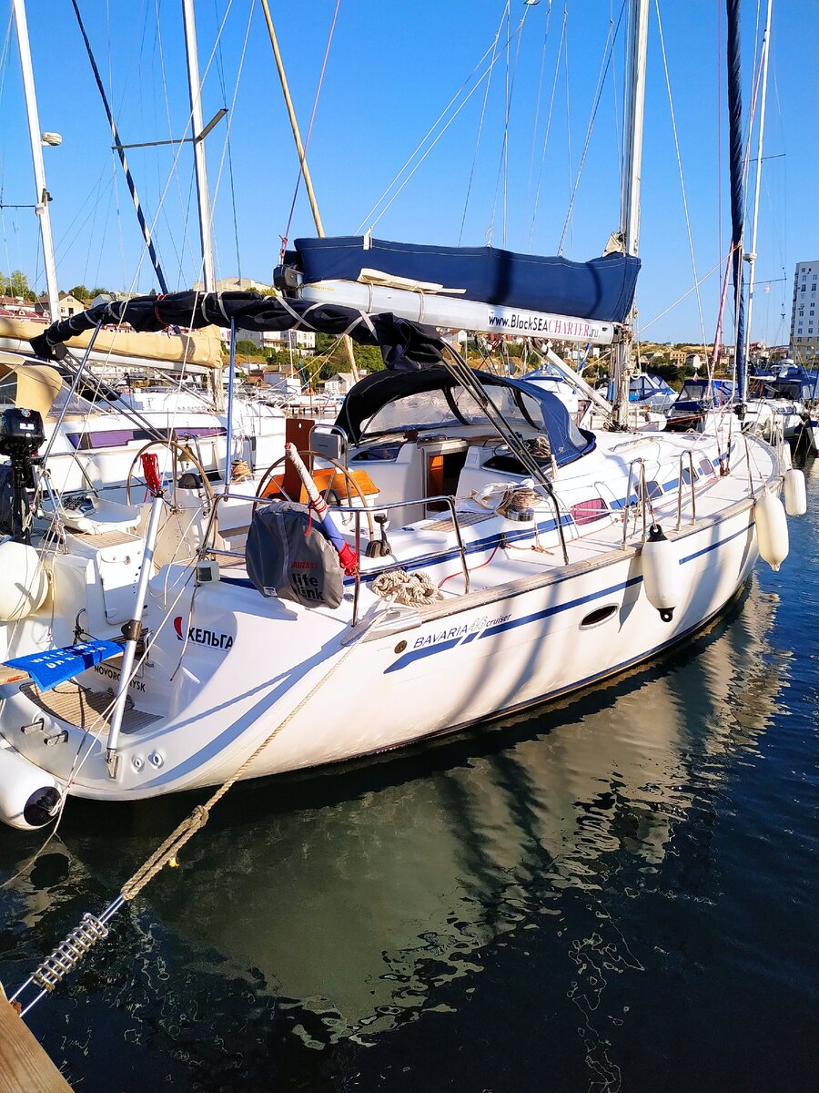 Итак, вчера собралась наша команда и мы познакомились с нашим инструктором. Капитан Кирилл обещал, что будет с нами добрым как мама и строгим как папа. Нашим домом и по совместительству школой будет вот эта красавица: Знакомьтесь, Хельга. Круизная парусная яхта типа "Бермудский шлюп". Длина 46 футов. Лодка рассчитана на экипаж до 8 человек, ну это по количеству спальных мест. Места эти, кстати, бывают разные. Есть три каюты с двухспальными кроватями, мне же досталась койка в так называемой экипажной каюте. Ну, это как боковушка в плацкартном вагоне: Кстати, несмотря на то, что койка к ногам заметно сужается, спать удобно. Тем более, что волнение вечером стихло и покачивание яхты почти не ощущалось. Ну а сейчас 6 утра, волнение немного усилилось и лодка плавно покачивается с носа на корму и с борта на борт. В марине все практически ещё спят. Ну ещё бы, все же раннее утро. Тишина. Только кое-где скрипят кранцы о причал, иногда то тут то там веревки стучат о мачту. Скоро рассвет: Вот так